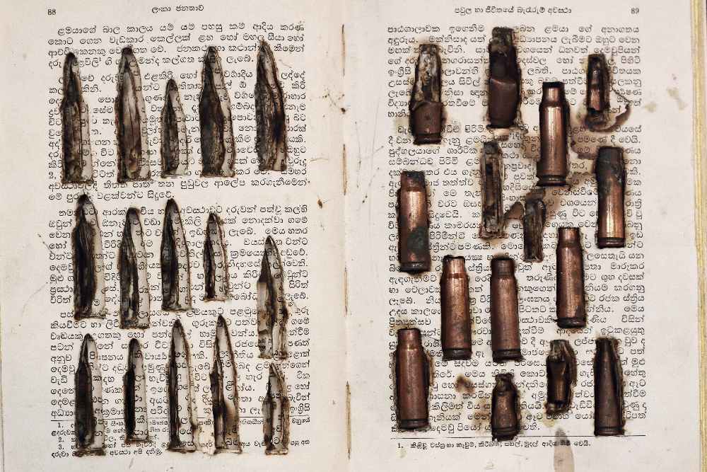 As one of the leading abstractionists of his country, Kingsley Gunatillake’s has a dual practice - of his canvases and paperworks exploring forms and colour theories, and artist’ books, which focus on the long and terrorised history of Sri Lankan civil war that lasted for over three decades, leaving a trail of dead memories and empty bullets amidst promises of reconciliation by politicians in its wake. Gunatilake questions the aftermath of war, consequences of destruction and explosion, and the rationality left in their inheritance.